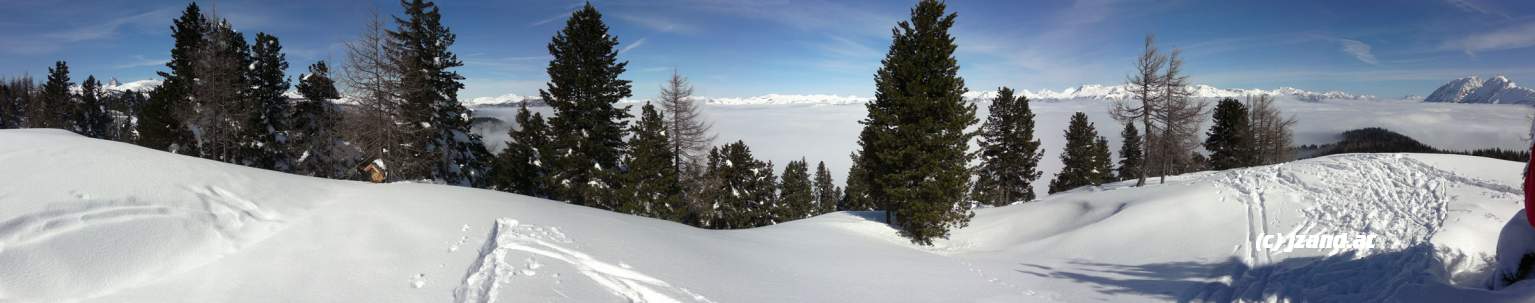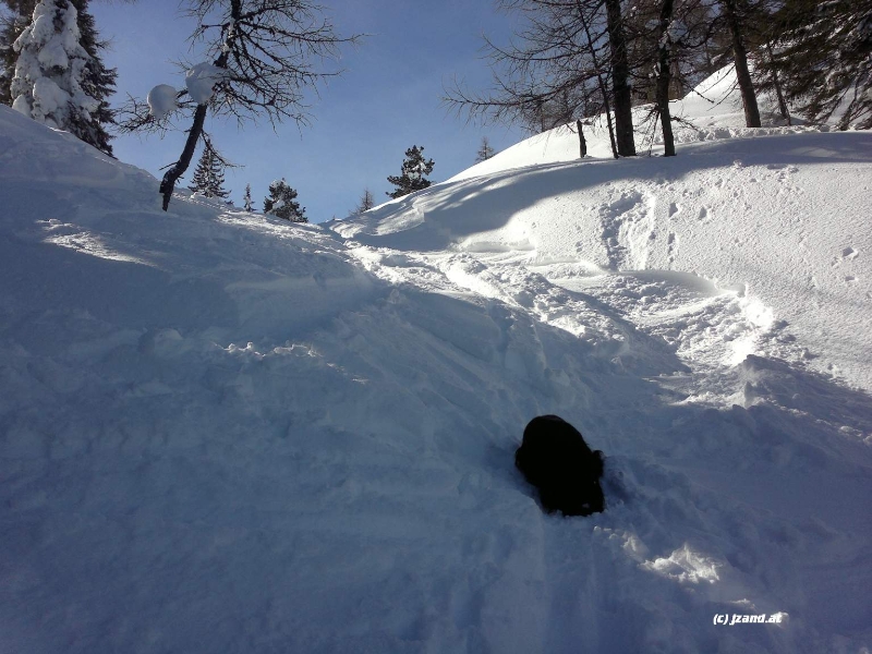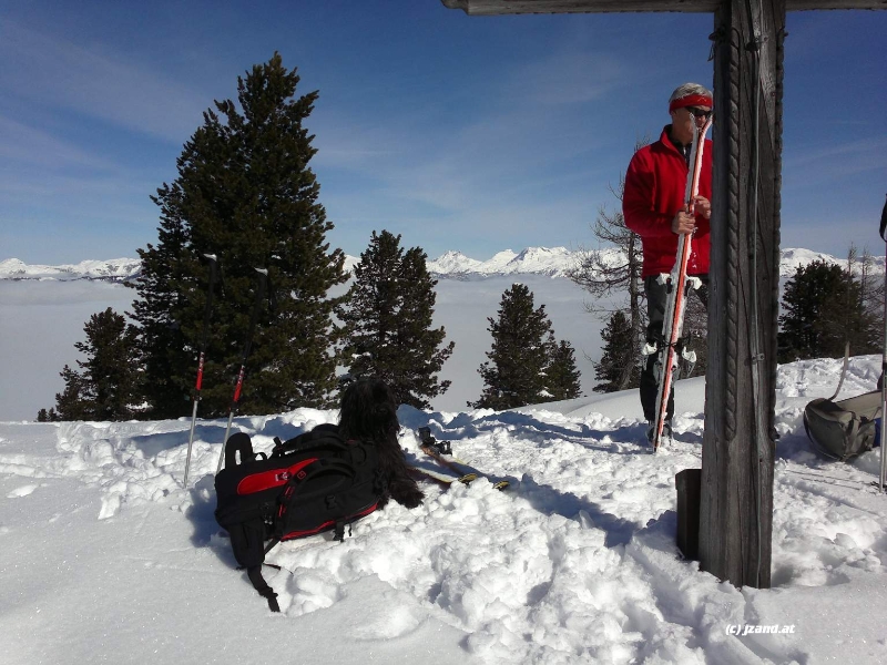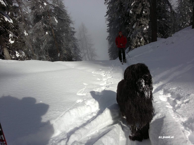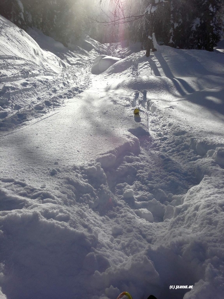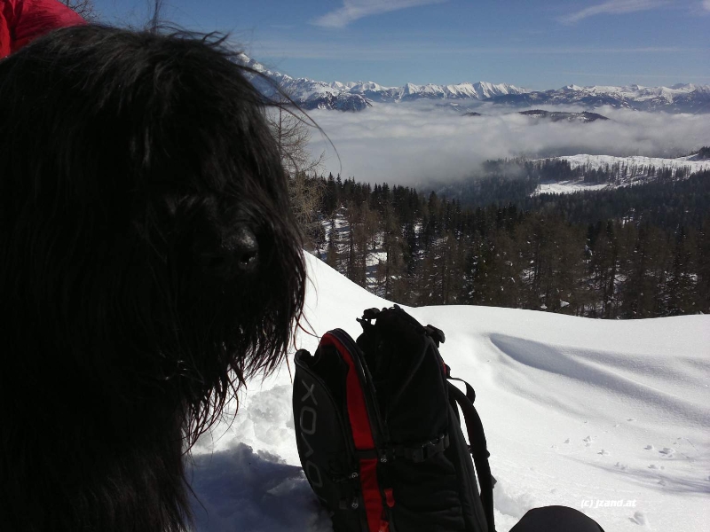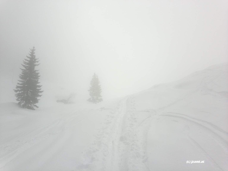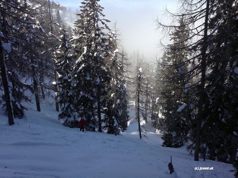 Mit Hans heute eine Skitour auf das Hochmühleck. Vom Gasthaus Stieger im Mühlreith über die Forststraße, später entlang des alten Holzzugweges bis zur Goseritzalm. In der Goseritzalm läßt sich bereits die nahe Sonne erahnen, und kurz vor dem Plateau des Hochmühlecks ist tatsächlich nur mehr Sonne und Pulverschnee. Nach einer kurzen Rast am Gipfel geht es entlang der Aufstiegsspur in herrlichem Pulverschnee wieder ins Tal.